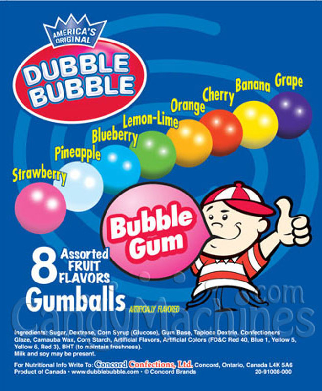 Assorted Color Vending Machine Gumballs – 850 Count (1")A Classic Assortment with the Iconic Dubble Bubble Logo Stock your vending machines with this colorful case of assorted fruit-flavored Dubb