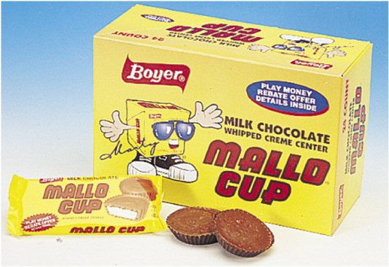 Mallo® Cups, Wrapped 15lb Whipped marshmallow crème surrounded by a delicious combination of milk chocolate and coconut makes this a one-of-a-kind classic treat. Ingredients Milk Chocolate (Sugar, Cocoa Butter, Milk, Chocolate Liquor, And Soy...