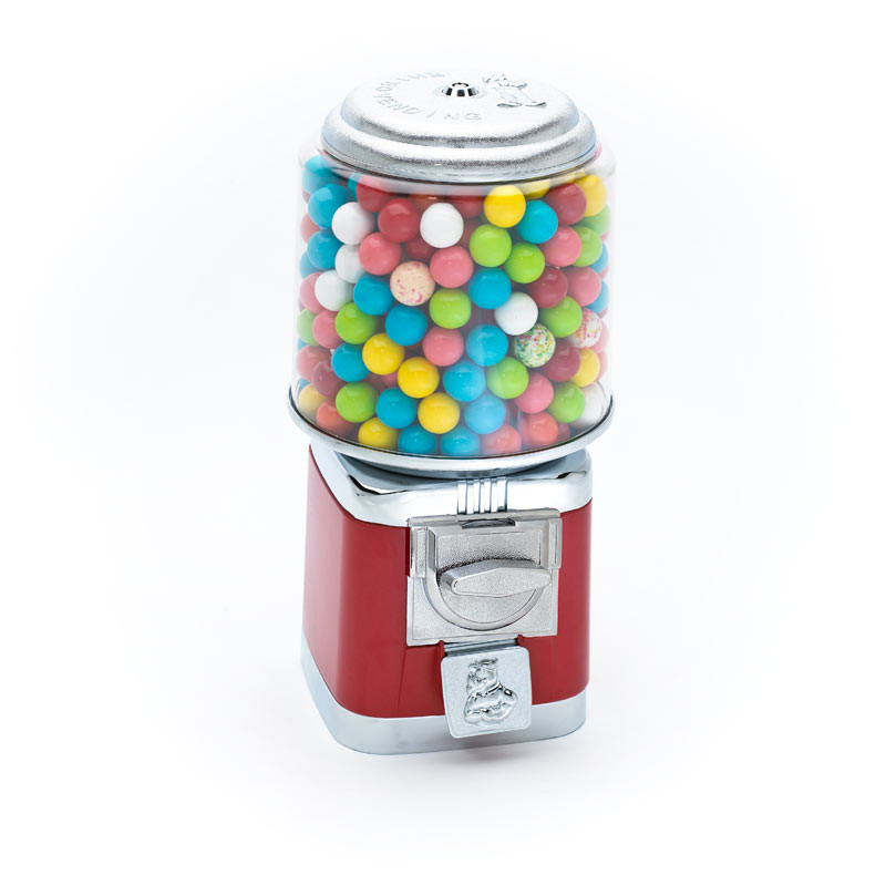Home use Gumball Machine: We have a full line of banks and dispensers for home or office use. The difference between our line of home use machines and our commercial gumball machines is the size of the gumballs they can vend or dispense and the coins accepted. We can customize any of our commercial machines to be free spin (doesn't require a coin) for special commercial or home use. We stock the full line of Carousel Gumball Machines. These machines typically take a small (1/2 inch) gumballs.
