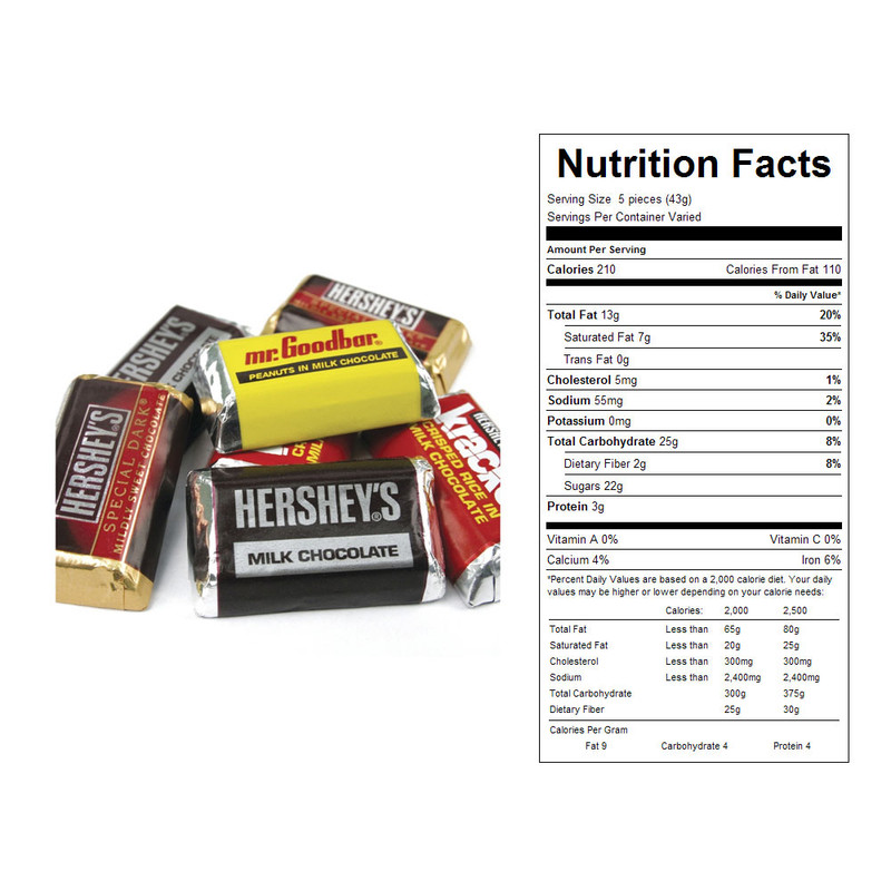 *We are unable to ship this item to California*   Hershey's Mini Bars Bulk Candy (25 lbs)25 pounds of Hershey's mini barsThis classic mixture of chocolate includes: Krackle bars, Mr. Goodbars, original milk chocolate bars and special dark chocolate...