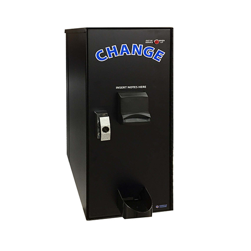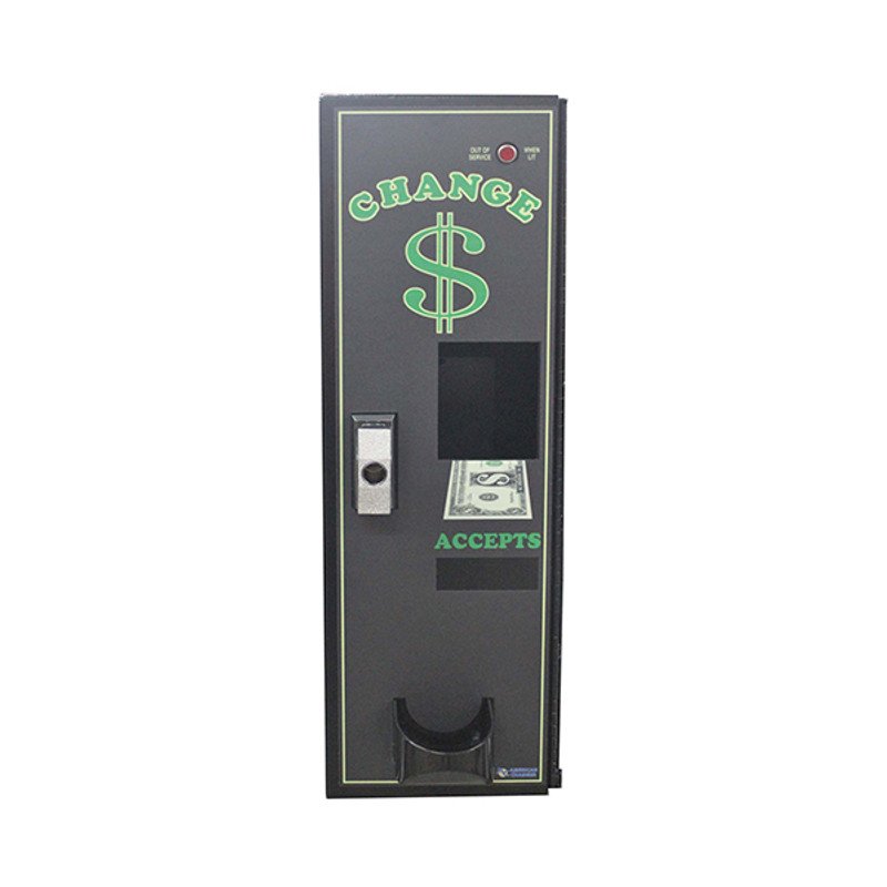 American Changer AC201XL Change Machine with Hopper Extensions This front load model is ideal for small vending and amusement locations. It has a 4,300 Quarter capacity in two hoppers, and is designed for use with $1, $5, $10 and $20 dollar bills. Gives...
