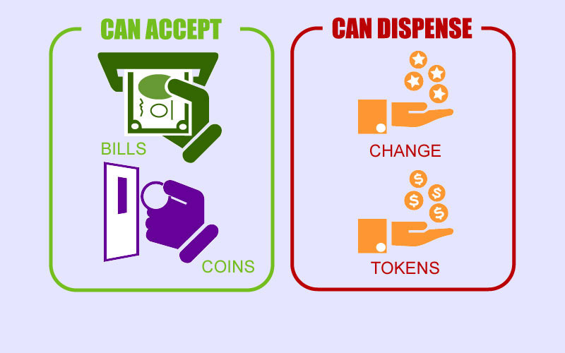 MC100 Bill Acceptor Change MachineFront Load / 1 Hopper / 1 Bill Acceptor This bill acceptor/dispenser is perfect if you have a laundry mat, petting zoo, car wash, a break room with a vending machine and amusement for kids. All Modular series machines...