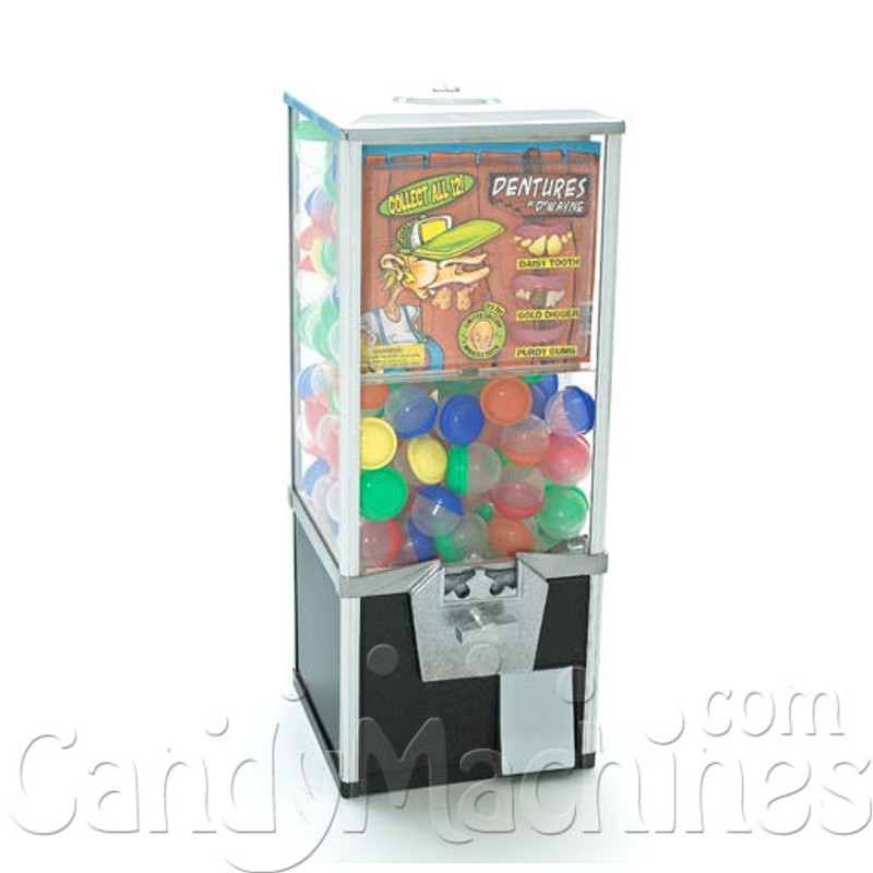 A vending machine rack is a vending machine stand that this two separate levels that allow you to maximize the space allowing you to put up to 10 bulk vending machines within a space 45-inches and smaller. We offer racks in four sizes: 18-inches, 24-inches, 33-inches, and 45-inches - An 18-inch rack can hold 4 bulk heads or 2 bulk heads and one large toy vendor and it is also referred to as a 3-4 rack. A 24-inch rack can hold 6 bulk heads or 3 bulk heads and 2 large toy vendors and it's also referred to as a 5-6 rack. A 33-inch rack can hold 8 bulk heads or 4 bulk heads and 3 large toy vendors and it's also referred to as a 7-8 rack. And last but not least, our 45-inch rack can hold up to 10 bulk heads or 5 bulk head sand 4 large toy vendors. Since our racks are universal and come with adjustable mounting brackets, you can attach a any machine with a standard 3-inch on center hole pattern (this covers just about any machine ever made).