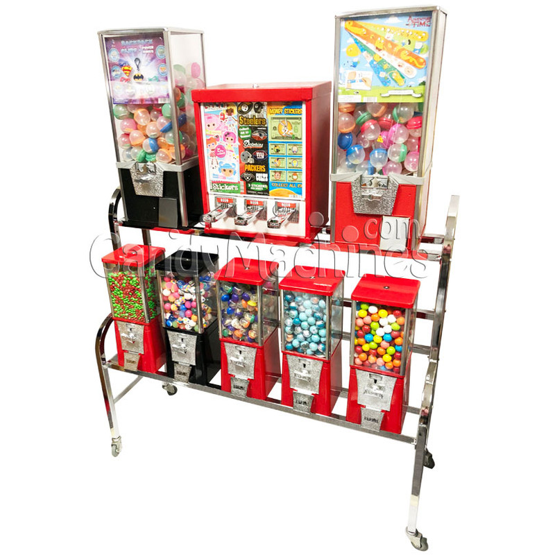 Find the LOWEST price for a Gumball Machine at CandyMachines.com, PERIOD. Find out more about the difference between a gumball and candy machine to decide which machine is right for you. Whether you're looking for a home machine, commercial, custom, spiral, or even a rack setup, we are sure to have what you need. Most of your machines are stocked in our Elgin, Illinois warehouse and ready for shipment. Our warehouse is stocked full of 1000's of gumball machines at any given time so we're sure to have a machine to fit your needs. Looking for something custom? Give us a call today to discuss your options.