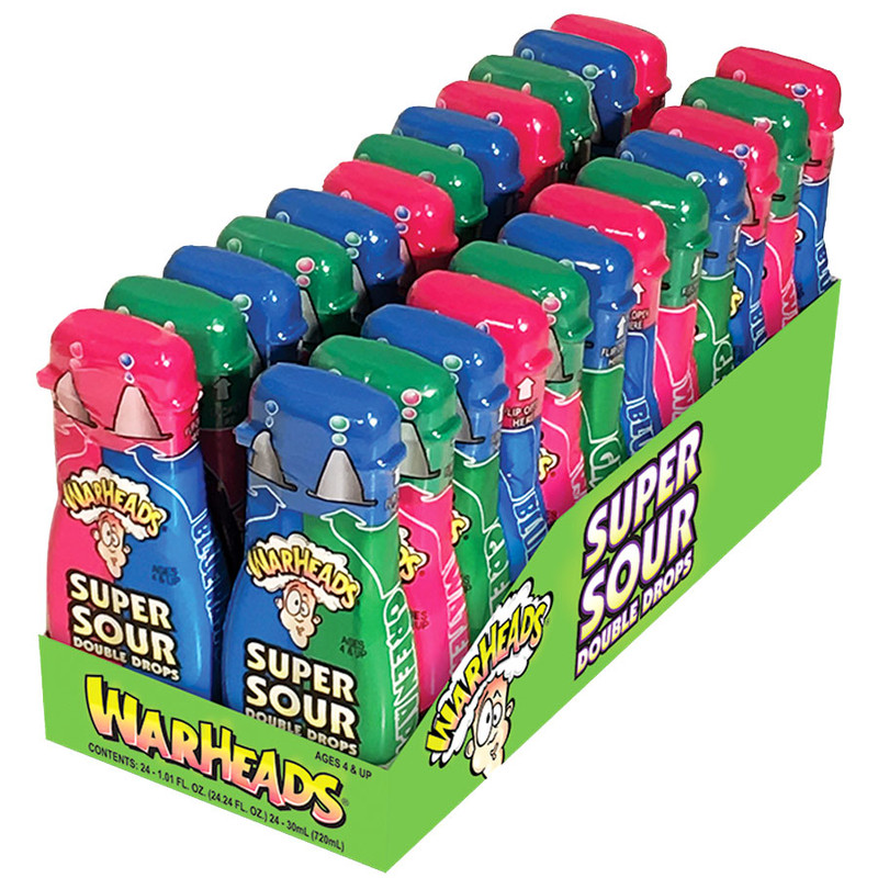 Warheads® Super Sour Double Drops – 24 Count Display Box Double the Flavors. Double the Sour. Dare to Drop! Get ready to crank up the sour with Warheads® Super Sour Double Drops! Each bottle features two intense liquid flavors side-by-side,...